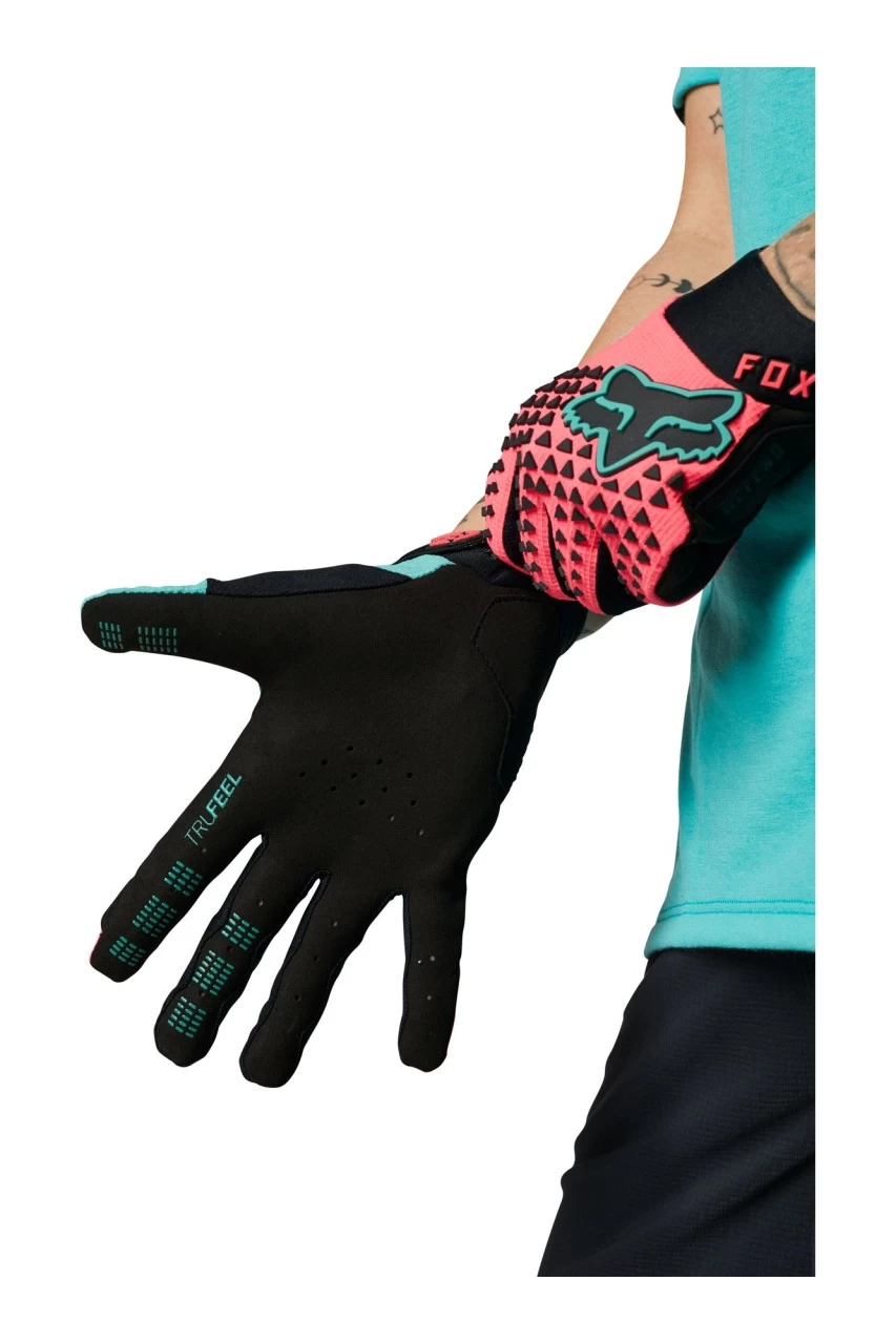 Die Damenhandschuhe Defend sind eine perfekte Kombination aus leichtgewichtigen Materialien am Handrücken und einer minimalistischen, jedoch extrem beständigen Handinnenfläche. Das elastische Meshgewebe zwischen den Fingern sorgt für verstärkte Flexibilität und leitet die Luft durch die Handschuhe für maximalen Tragekomfort. Touchscreen-Kompatibilität ist ein weiteres Feature, damit du eindrucksvolle Racing-Fotos machen kannst, sobald das Wetter umschlägt. Halte jeden Augenblick fest, und teile ihn mit anderen – #foxracing