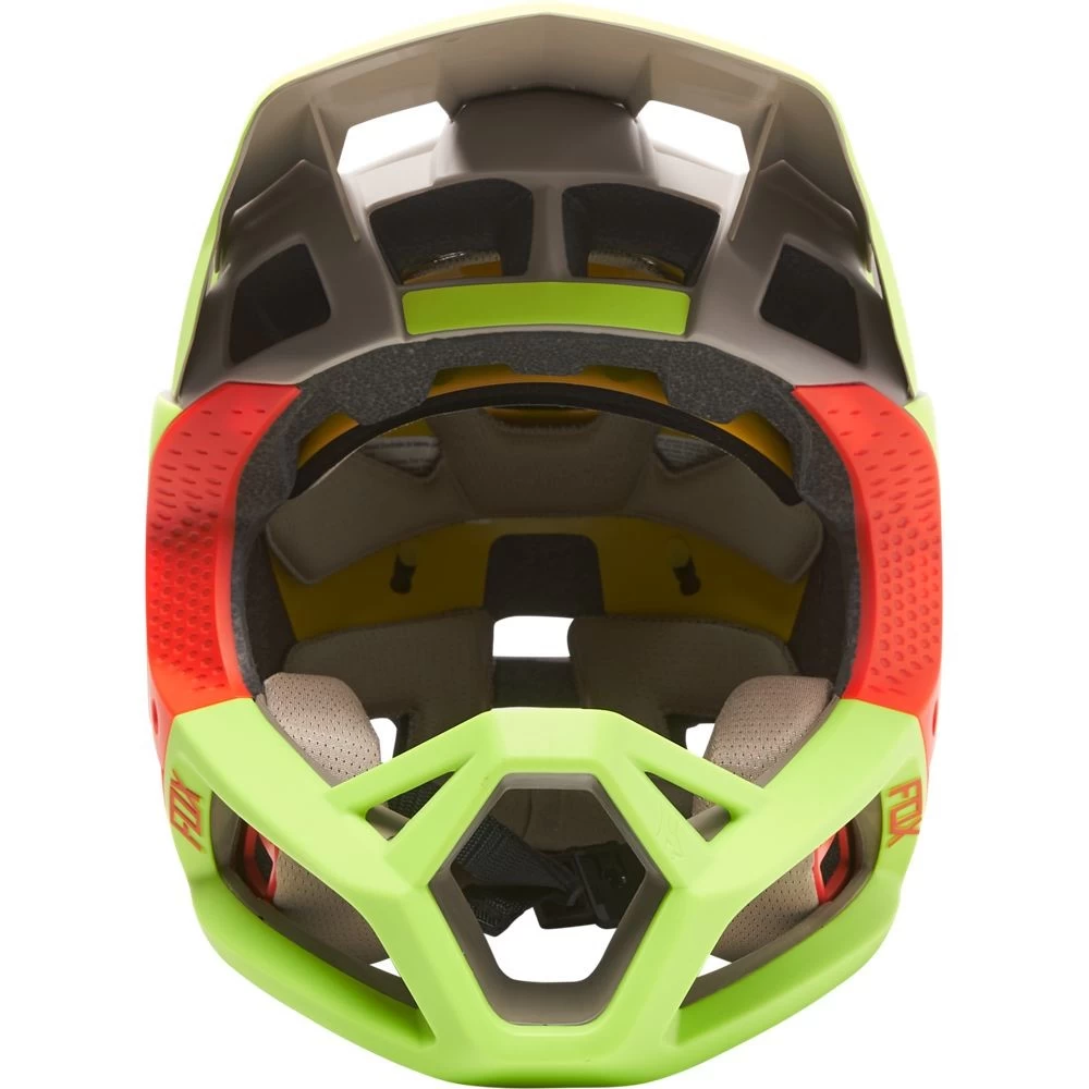Der Fox Proframe Helm ist der leichteste und atmungsaktivste Integralhelm, der je von uns entwickelt wurde. Performance auf höchstem Niveau für offensive Gelände- und Enduro-Piloten garantiert dieser Helm mit downhill-zertifiziertem Schutz, einer superleichten Schale und unserem zum Patent angemeldeten, vollständig integrierten Kinnbügel. Mit 15 Big-Bore-Lufteinlass- und 9 Auslassöffnungen bietet der Proframe die Luftzirkulation und Atmungsaktivität eines offenen Helms, damit du auch bei den längsten und anspruchsvollsten Climbs immer cool bleibst; und wenn du den Gipfel erreicht hast, kannst du auf seinen umfassenden Schutz vertrauen, um selbst auf härtesten Abfahrten deine Grenzen zu testen.