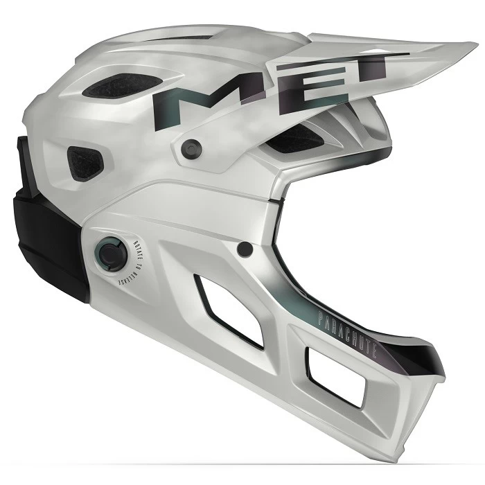 DER MAGNETISCHE KINNBÜGEL VERWANDELT DEN FULLFACE-HELM IM HANDUMDREHEN IN EINE HALBSCHALE UND UMGEKEHRT. Das MET MCR-Verschlusssystem wurde in Kooperation mit FIDLOCK® entwickelt